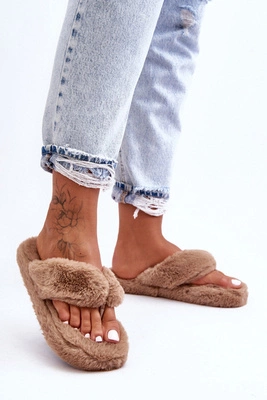 Damskie Futrzane Klapki Papcie Brązowe Elma