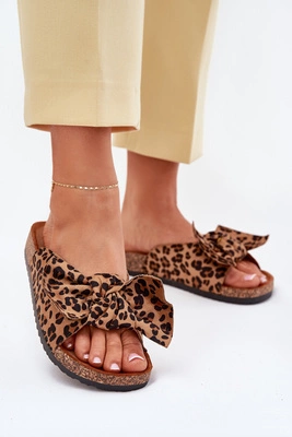 Klapki Damskie Na Korkowej Podeszwie Kokardką Panterka Seressa