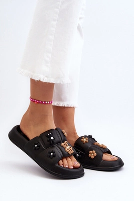 Damskie Piankowe Klapki Z Ozdobami Czarne Cambrina