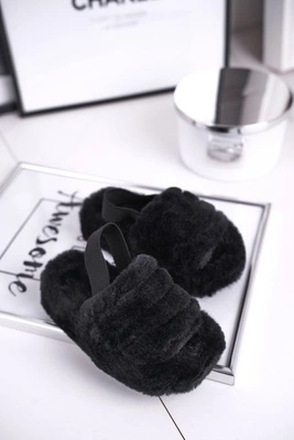 Klapki Damskie z Futerkiem Czarne NiceFur