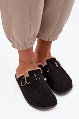 Klapki Chodaki Damskie Ocieplane Futerkiem Z Klamrą Czarne Sylisse