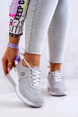 Damskie Skórzane Buty Sportowe Sneakersy Szare Loissa