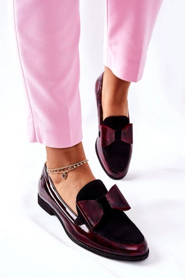 Damskie Półbuty Maciejka Lakierowane Loafery Marmurkowe Bordowe 04099-33