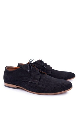 Męskie Półbuty Bednarek Nubukowe Ażurowe Czarne Hermes