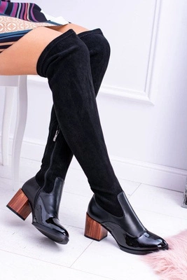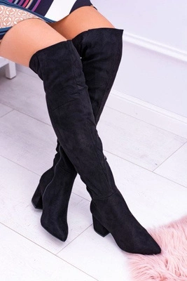 Damskie Kozaki Za Kolano Zamszowe Czarne Feluni