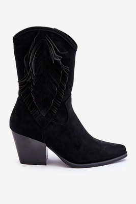 Damskie Zamszowe Kozaki Kowbojki Czarne Alaina