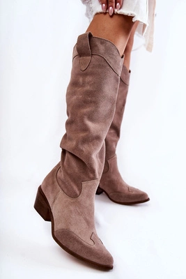 Zamszowe Kozaki Kowbojki Lewski Shoes 3198 Cappucino