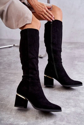 Zamszowe Klasyczne Kozaki Na Obcasie Czarne Kastia