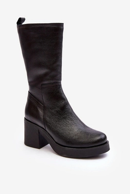 Damskie Skórzane Kozaki Na Obcasie Czarne Lewski 2928/B/2