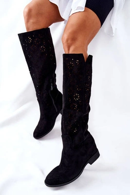 Ażurowe Kozaki Na Ukrytym Koturnie Czarne Lara