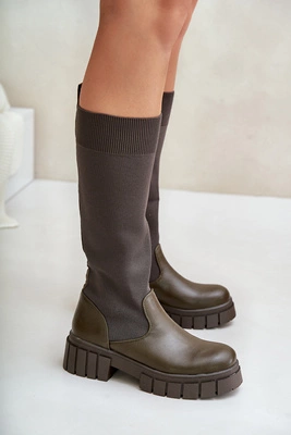Wsuwane Kozaki Ze Skarpetkową Cholewką Ciemnozielone Iranel