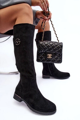 Zamszowe Kozaki Damskie Na Płaskim Obcasie Czarne Albuna