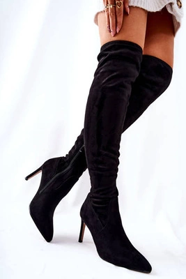 Kozaki Damskie Do Kolana Eko-Zamsz Czarne First Time