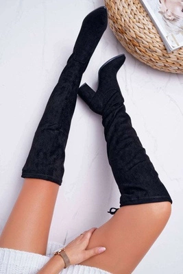 Kozaki Damskie Na Obcasie Lu Boo Zamszowe Czarne