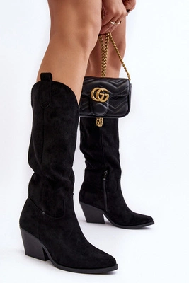 Zamszowe Kozaki Kowbojki Na Niskim Obcasie Czarne Lunah
