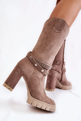 Zamszowe Kozaki Na Szpilce Beżowe Arison