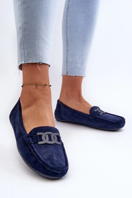 +12Damskie Zamszowe Mokasyny Granatowe Lenvie