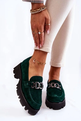 Zamszowe Mokasyny Z Ozdobą Zielone Santi