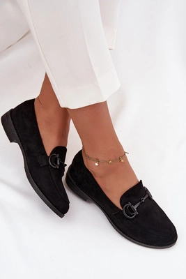 Mokasyny Damskie Z Ozdobnym Detalem Eko Zamszowe Czarne Ambria
