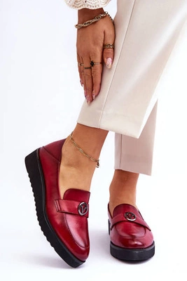 Damskie Skórzane Mokasyny Na Niskim Koturnie Czerwone Synthia