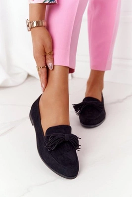 Zamszowe Mokasyny Z Frędzlami Czarne Alicante