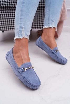 +8Mokasyny Damskie Niebieskie Zamszowe Bolero