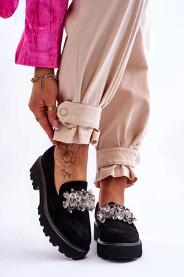 Damskie Mokasyny Na Platformie Z Ozdobami Czarne Brenda