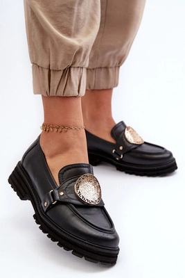 Zazoo 2880 Damskie Mokasyny Skórzane Z Ozdobą Czarne