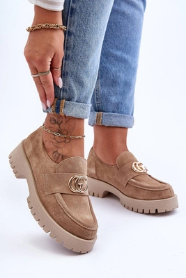 Zamszowe Mokasyny Na Platformie Z Łańcuchem D&A TW552 Beżowe