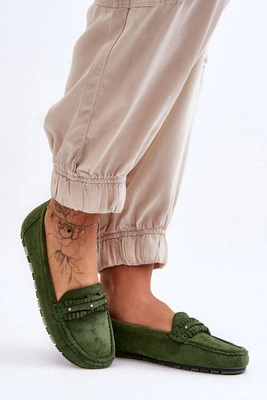 Damskie Zamszowe Mokasyny Zielone Clorie