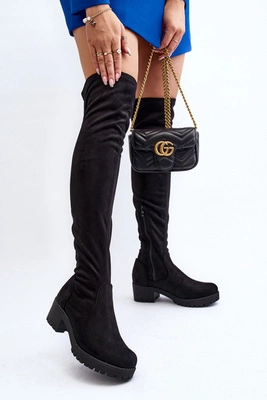 Kozaki Damskie Zamszowe Za Kolano Czarne Enelyn