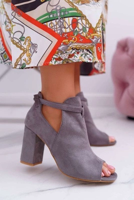 Szare Botki Sandały Na Słupku Odkryte Palce Grays