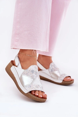 Zazoo 1786 Skórzane Sandały Damskie Na Platformie Z Ozdobą Perłowy Beż