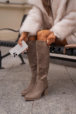 - Beżowe kozaki damskie