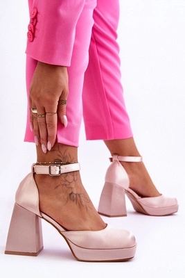 Skórzane Sandały Na Wysokim Słupku I Platformie Różowe Sky Dream