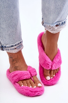 Damskie Futrzane Klapki Papcie Fuksja Elma