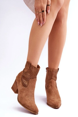 Zamszowe Ażurowe Botki Na Koturnie Camel Berthe