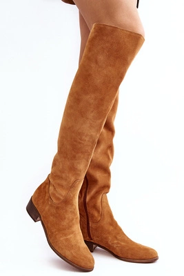 Damskie Zamszowe Kozaki Za Kolano Na Płaskim Obcasie Camel Hewanella