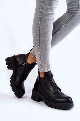 Damskie Skórzane Trapery Botki Czarne Lemar Vergo