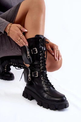 Damskie Kozaki Glany Sznurowane Z Nerkami Czarne Mirrano