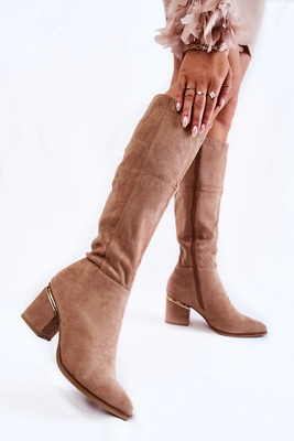 Zamszowe Klasyczne Kozaki Na Suwak Beżowe Leyette