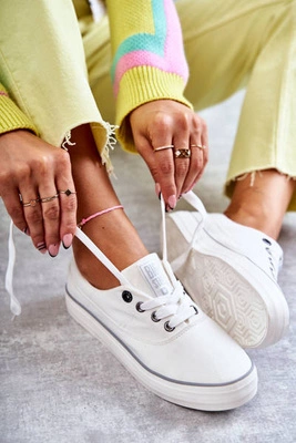 +2Materiałowe Damskie Tenisówki Big Star KK274017 Białe