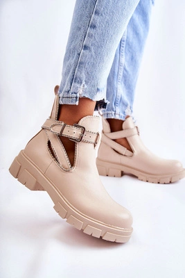 Damskie Skórzane Botki Z Ćwiekami Beżowe Clares