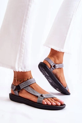 Klasyczne Damskie Sandały Na Rzepy Szare Kalla