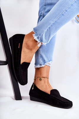 Damskie Zamszowe Mokasyny Na Koturnie Czarne La Cava