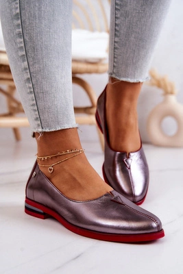 Skórzane Półbuty Maciejka Srebrne 05035-42