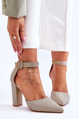 Błyszczące Czółenka Na Wyższym Słupku Złote True Love