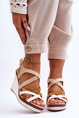 +4Sandały Na Koturnie Z Paseczkami Beżowe Ellen