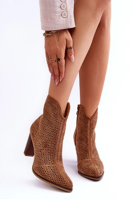 Ażurowe Zamszowe Botki Na Słupku Brązowe Logan