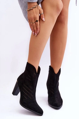 Ażurowe Zamszowe Botki Na Słupku Czarne Logan